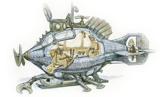 One of the best known of Jules Verne's novels, who is one of the main inspirations behind steampunk, is 20,000 Leagues Under the Sea, which features Captain Nemo and his submarine Nautilus. While submarines had been designed and built previous to his work, his vision of them was more advanced than any at the time, and encouraged inventors towards making his vision a reality.